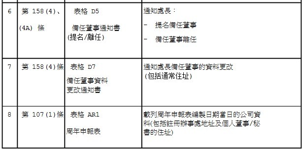 (d) 根據該條例第 109 條,公司須提交一份周年申報表 (表格 AR1),載列公司的資料,包括周年申報表編製日期當日的註冊辦事處地址,以及個人董事及秘書的通 常 住址。[公司須按照該條例的規定使用相關的指明表格通知處長資料更改。]